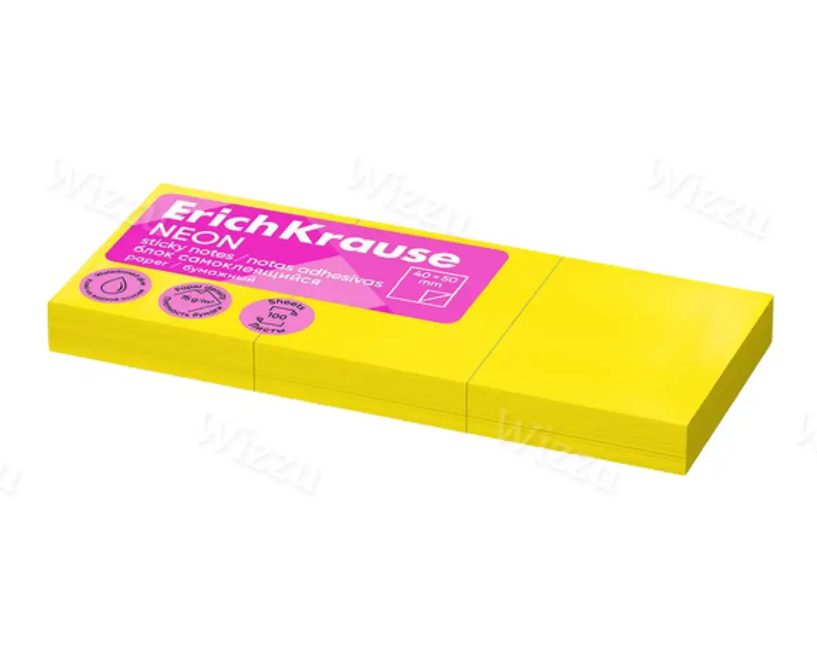 Блок самоклеящийся бумажный ErichKrause Neon, 40х50 мм, 300 листов, желтый Арт.61707
