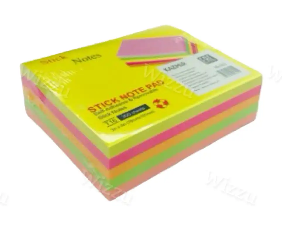Бумага для заметок с клеевым краем, 76х101мм, неон, 5 цветов, 300л. Арт КБ-305