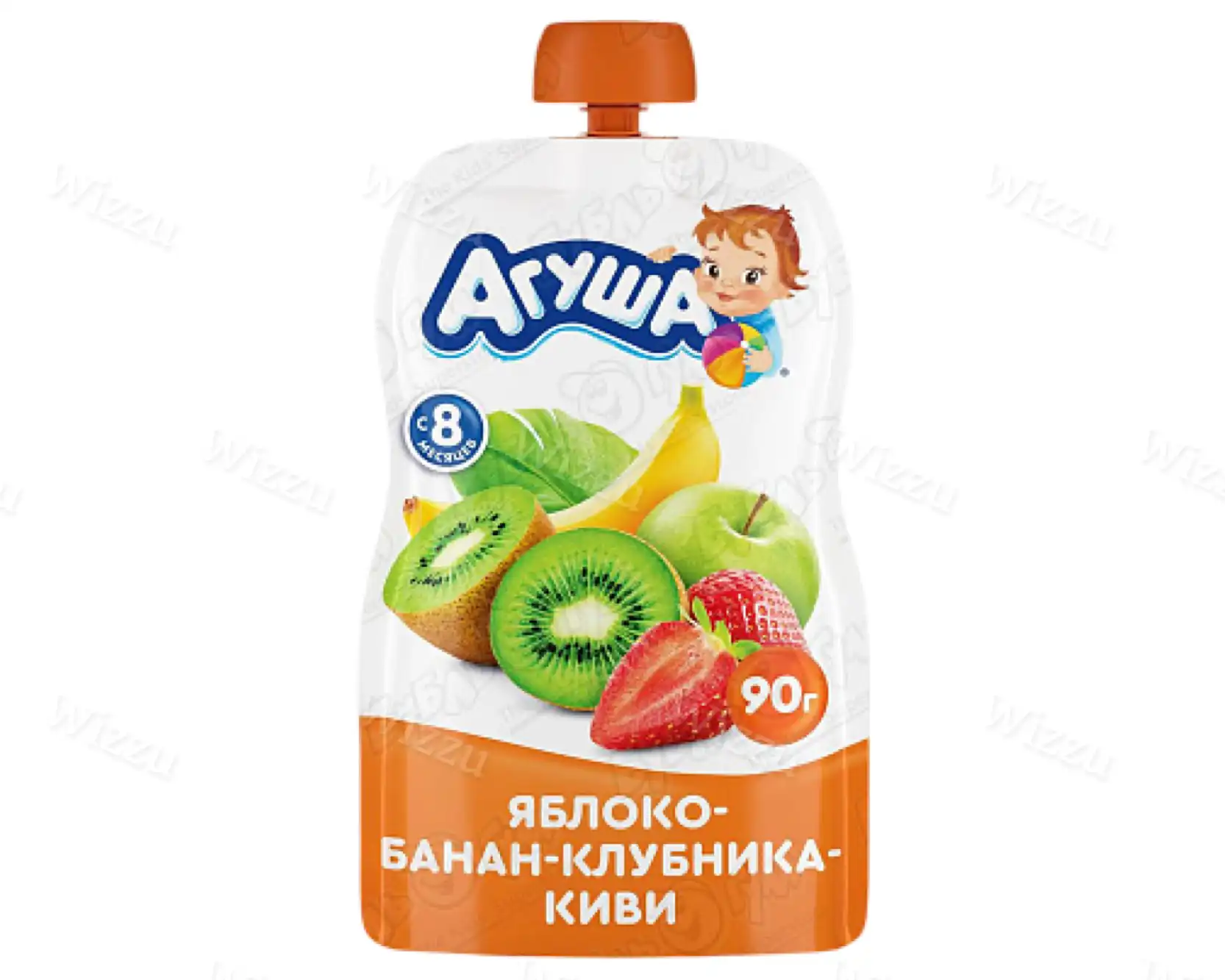 Детское пюре "Агуша" пауч Яблоко банан клубника киви 90г, шт
