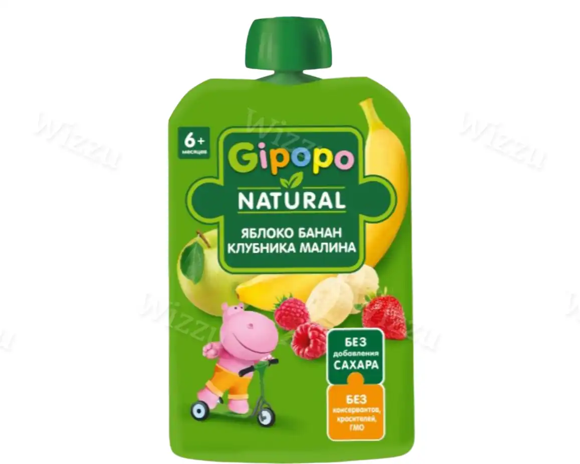 Детское пюре "Gipopo" Яблоко-банан-малина дойпак 90г