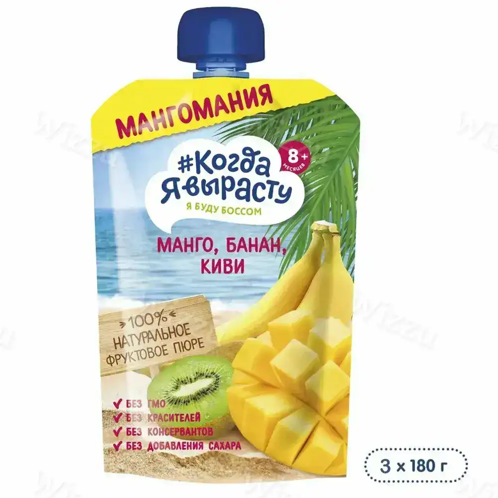 Детское пюре "Когда Я Вырасту" Яблоко Манго Банан Маракуйя без сахара с 8 мес гомогенизированное 180г