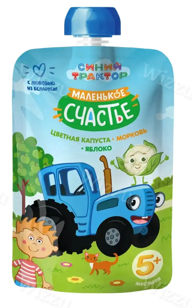 Детское пюре "Маленькое счастье" Синий Трактор Цв.капуста-яблоко-морковь 85г