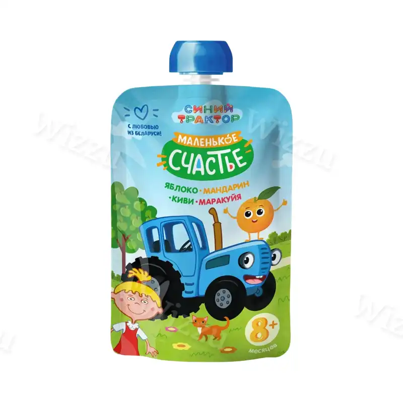 Детское пюре "Маленькое счастье" Синий Трактор Яблоко-мандарин-киви-маракуйя 90гр