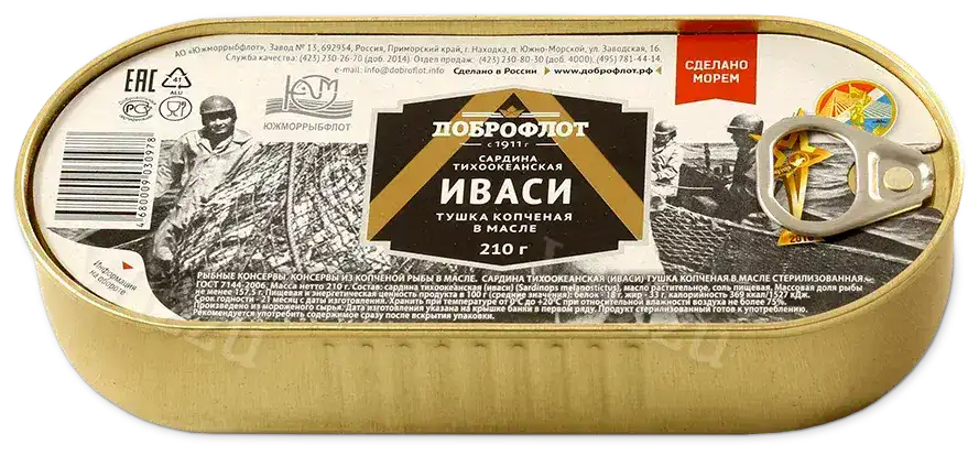 Доброфлот сардина иваси копченая в масле hansa 175г