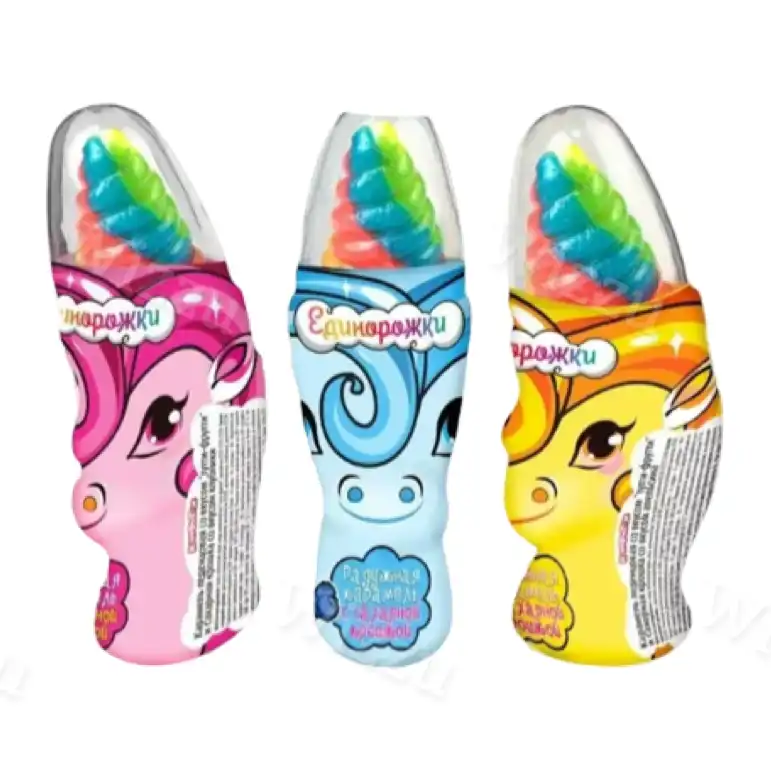 Единорожка радужная карамель с сахарной крошкой 50гр блок 12 шт