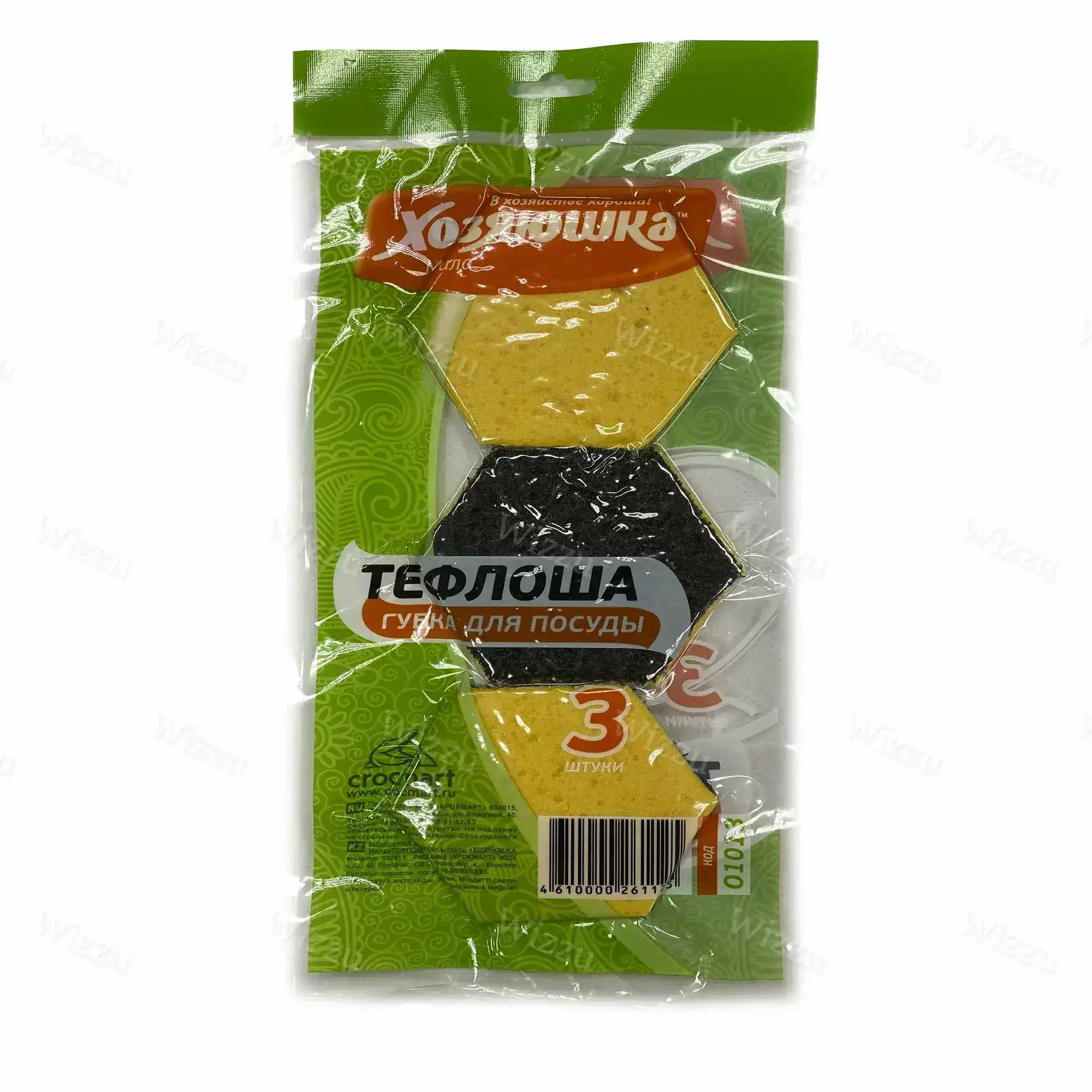 Губка для посуды Тефлоша 3шт в ваакум. уп. Хозяюшка Мила