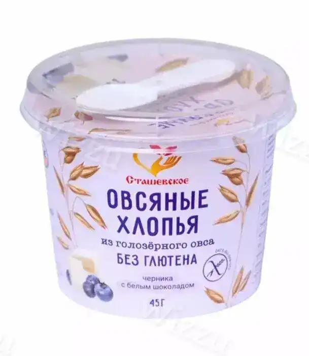 Хлопья Овсяные Без Глютена "Сташевское" Черника с белым шок.стаканчик 45гр