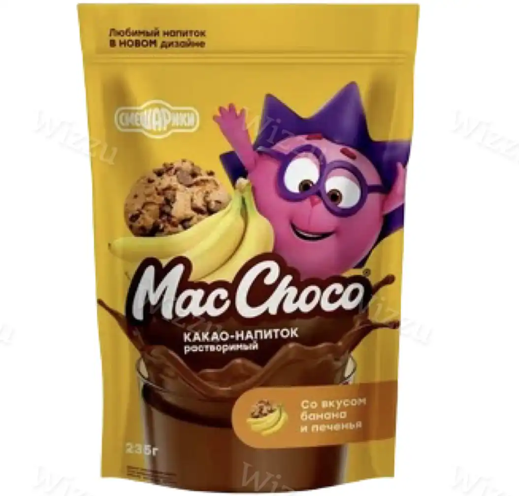 Какао напиток MacChoco Смешарики Банан печенье дой/пак235г/12