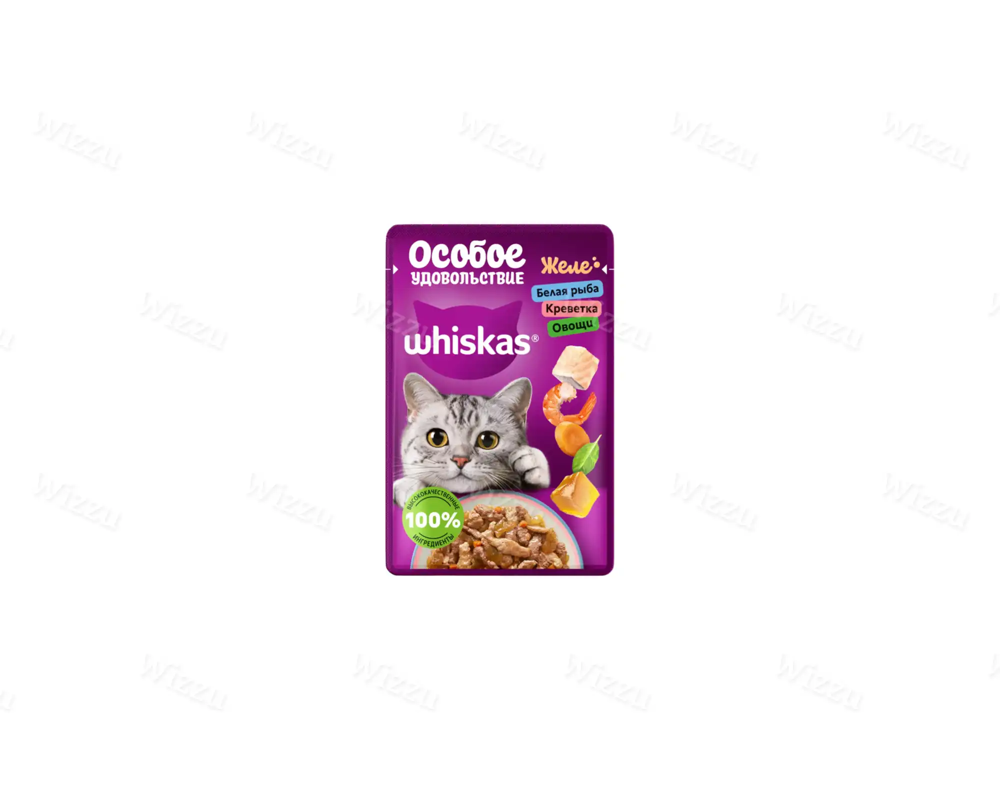 Корм желе "Whiskas" от 1 года желе Белая рыба/креветка/овощи 75г