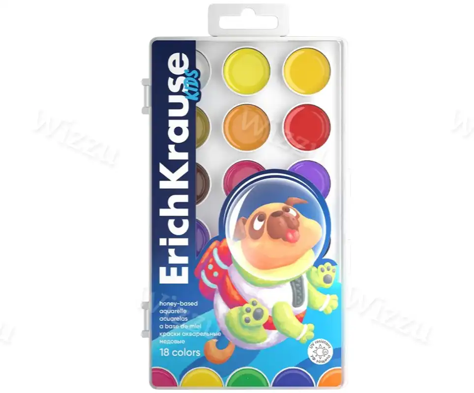 Краски акварельные ErichKrause Kids Space Animals медовые с УФ защитой яркости 12 цветов (в пластиковой коробке с европодвесом) Арт.61360