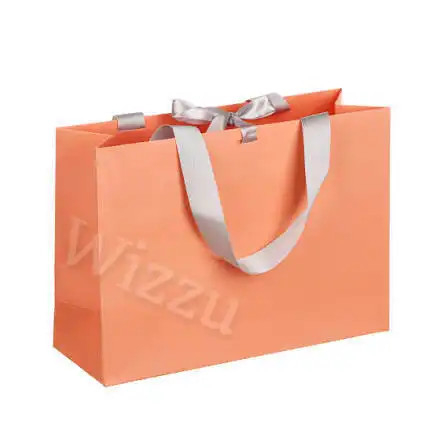 LADECOR Пакет подарочный, высококачественная бумага, с лентой, 32x11x25 см, персиковый