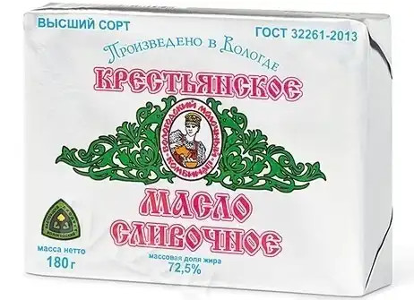 Масло сливочное "Вологодское" Крестьянское 72,5% 180гр