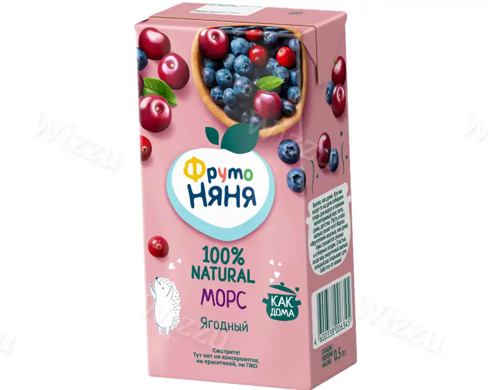 Морс "ФрутоНяня" из клюквы черники и вишни 0,2л, шт