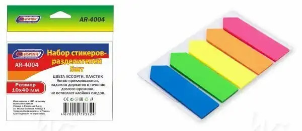 Набор стикеров-разделителей "ASMAR" (5ШТ.,1х4см, цвет ассорти, пластик). AR-4004