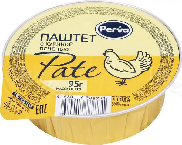 Паштет с куриной печенью Perva Халяль ламистер круглый 95 гр