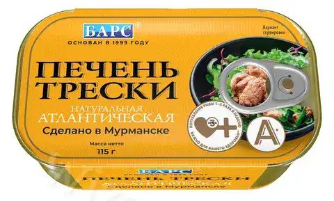Печень трески натуральная из мор. сырья 1/115 банка CLUB ТМ БАРС