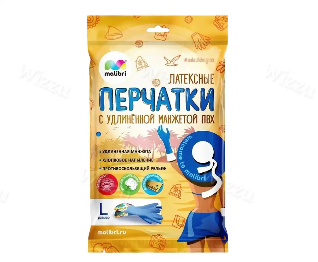 Перчатки с удлиненной манжетой Malibri Латексные рр L
