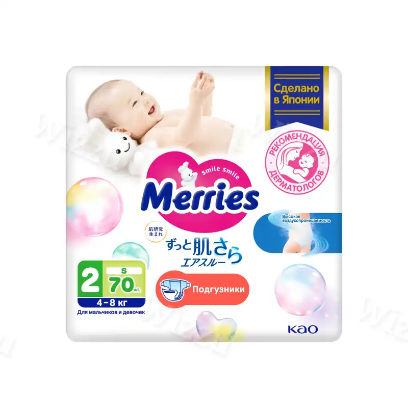 Подгузник Merries S 70шт (4-8кг)