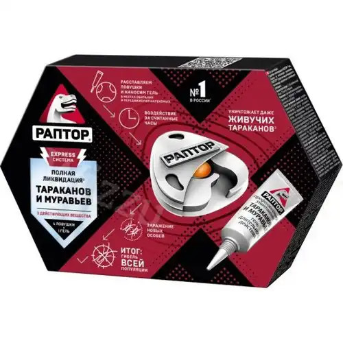 Раптор 4 ловушки + гель.Система ликвидация тараканов и муравьев