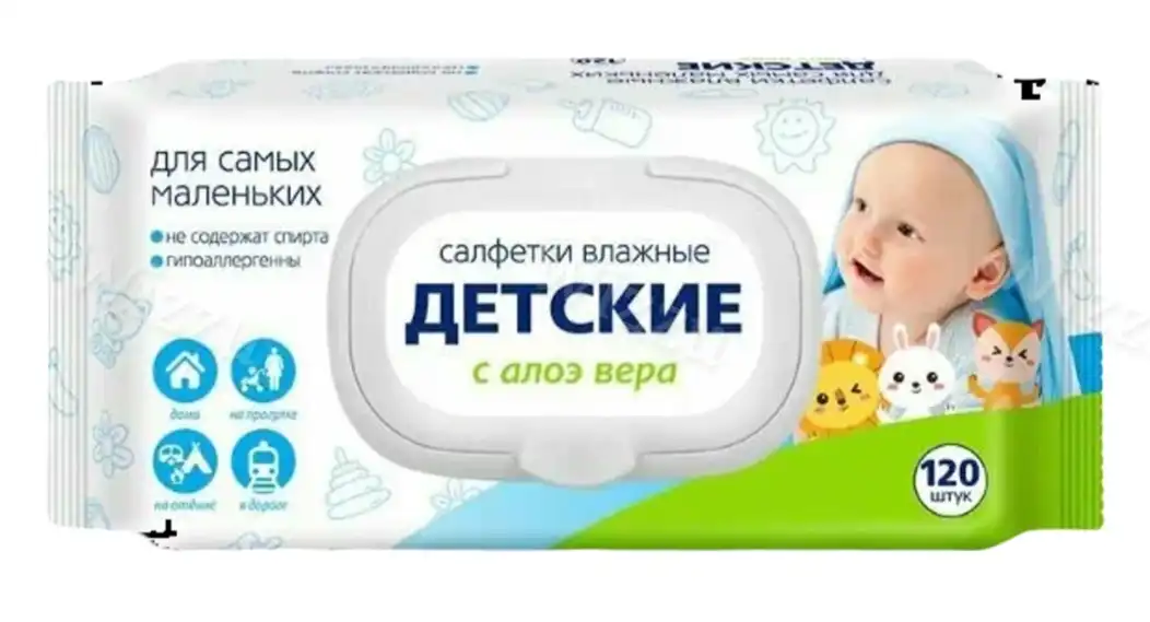 Салфетки влажные Детские с алоэ вера 120шт 72085