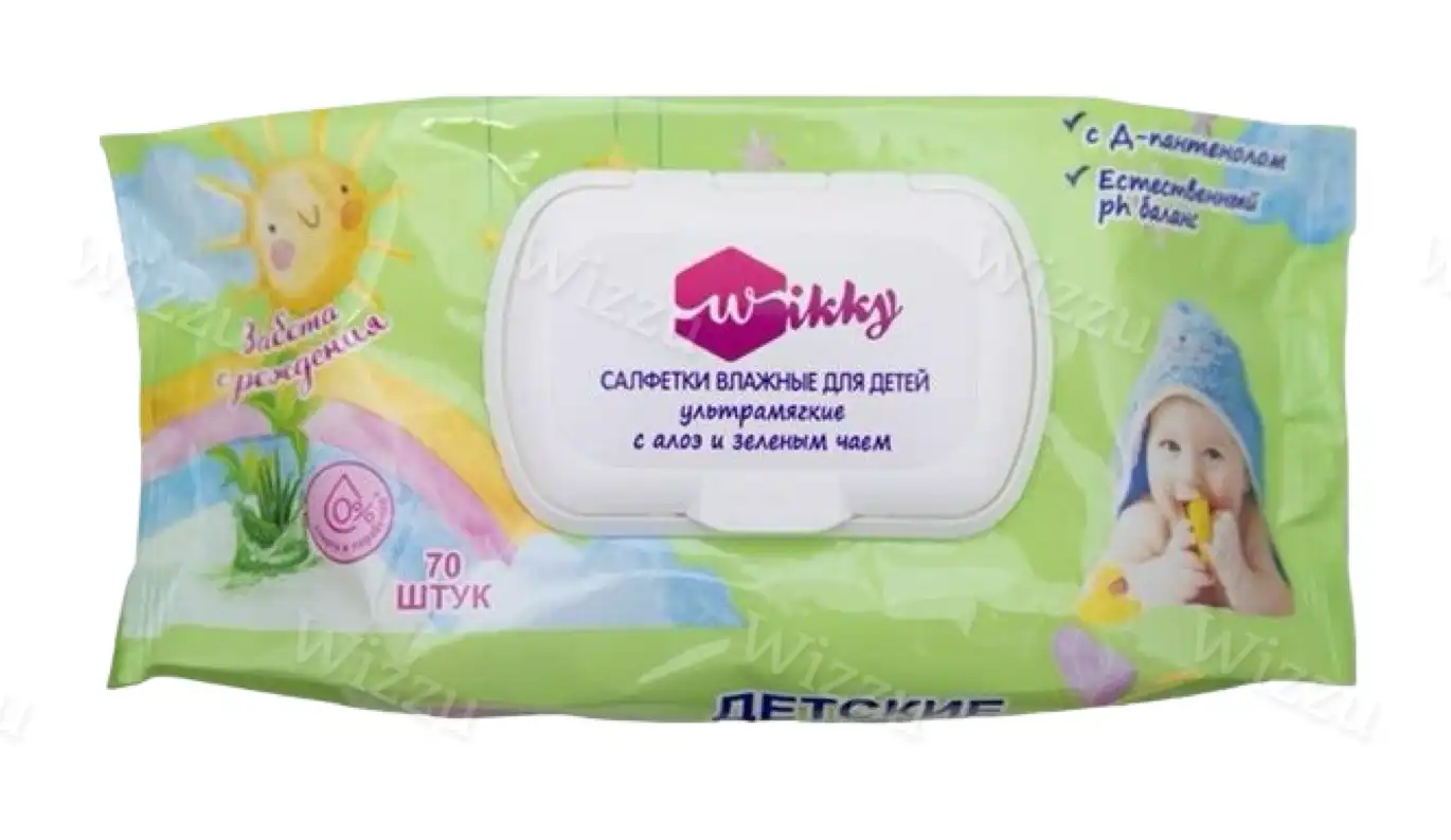 Салфетки влажные Wikky Детские ультрамягкие с Алоэ и зеленым чаем