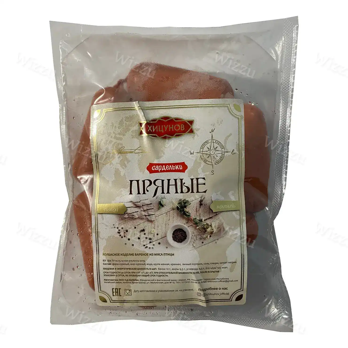 Сардельки пряные МГС 0,5 кг Хицунов