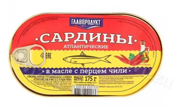 Сардина Главпродукт атлант в масле с перцем чили 175г, шт