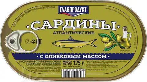 Сардина "Главпродукт" атлантические с оливковым маслом 175гр