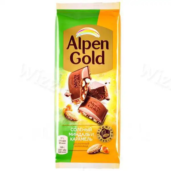 Шоколад Альпен Голд Соленый миндаль и карамель 80г, шт