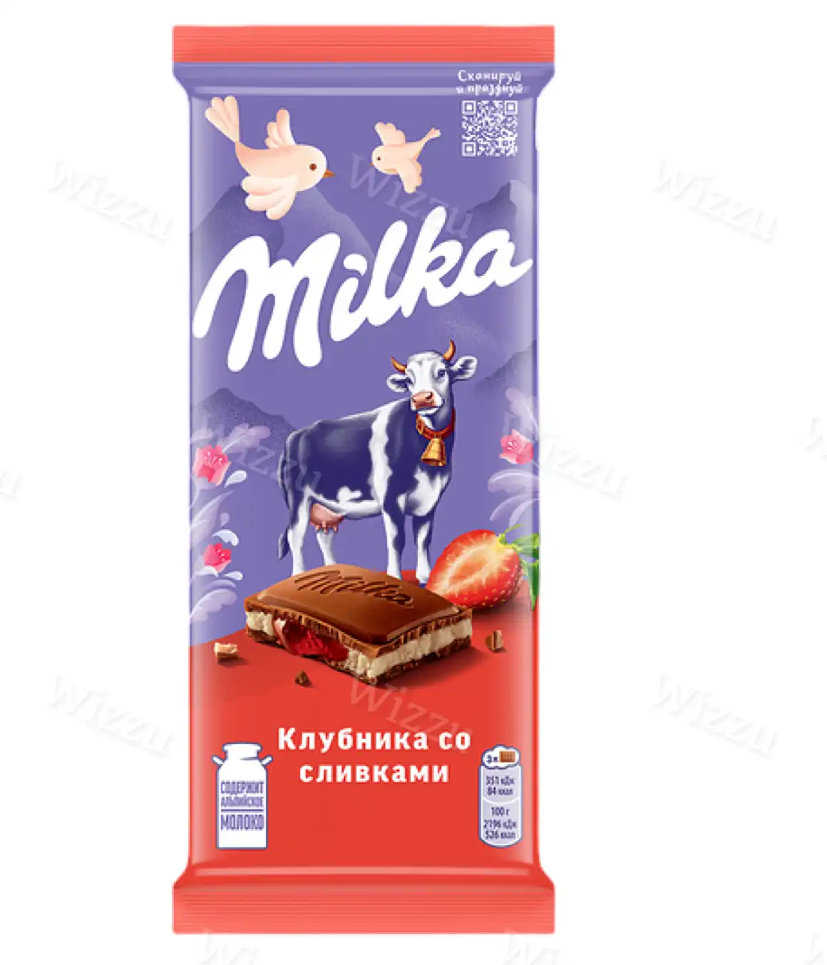 Шоколад Милка двухсл.нач. Клубника со сливками 80гр