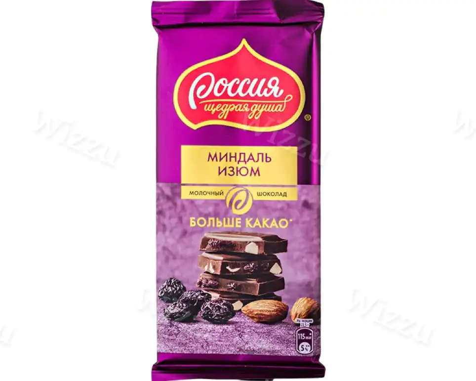 Шок.плитка Россия Щедрая Душа Миндаль Изюм 82гр