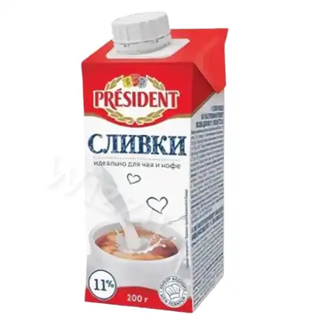 Сливки Президент питьевые Брик Слим 11% 200гр