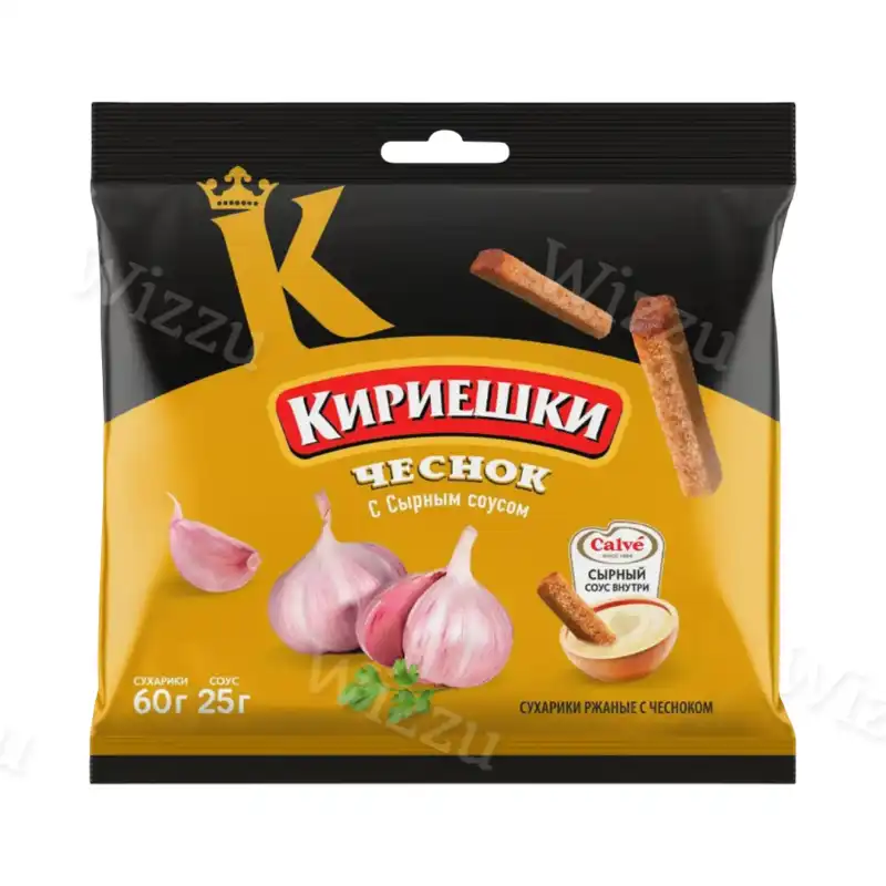 Сухарики ржаные Кириешки Чеснок с Сырным соусом 60+25гр