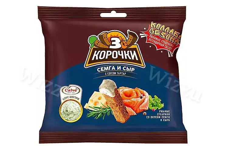 Сухарики Три Корочки ржаные соус 60г+20г сыр-сем тар, шт