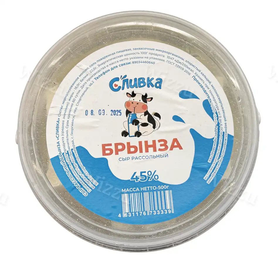 Сыр Рассольный Брынза 45% 500гр (ведро)