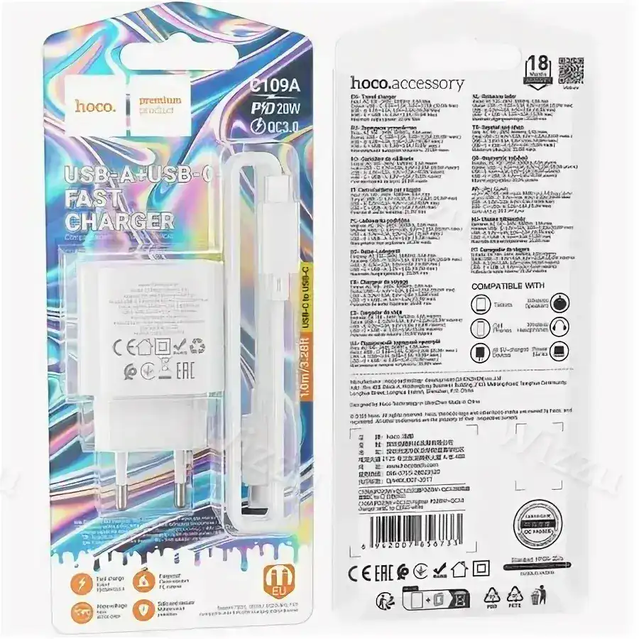 СЗУ HOCO C109A PD 20W Type-c на Type-c (белый) 6942007656733