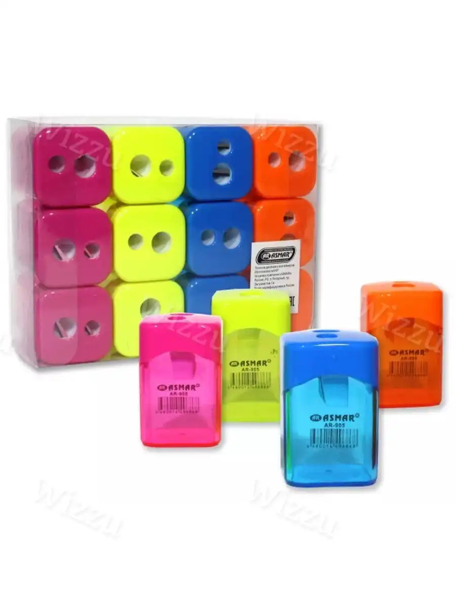 ТОЧИЛКА ДВОЙНАЯ С КОНТЕЙНЕРОМ ЦВЕТНАЯ "ASMAR" 24шт. AR-942