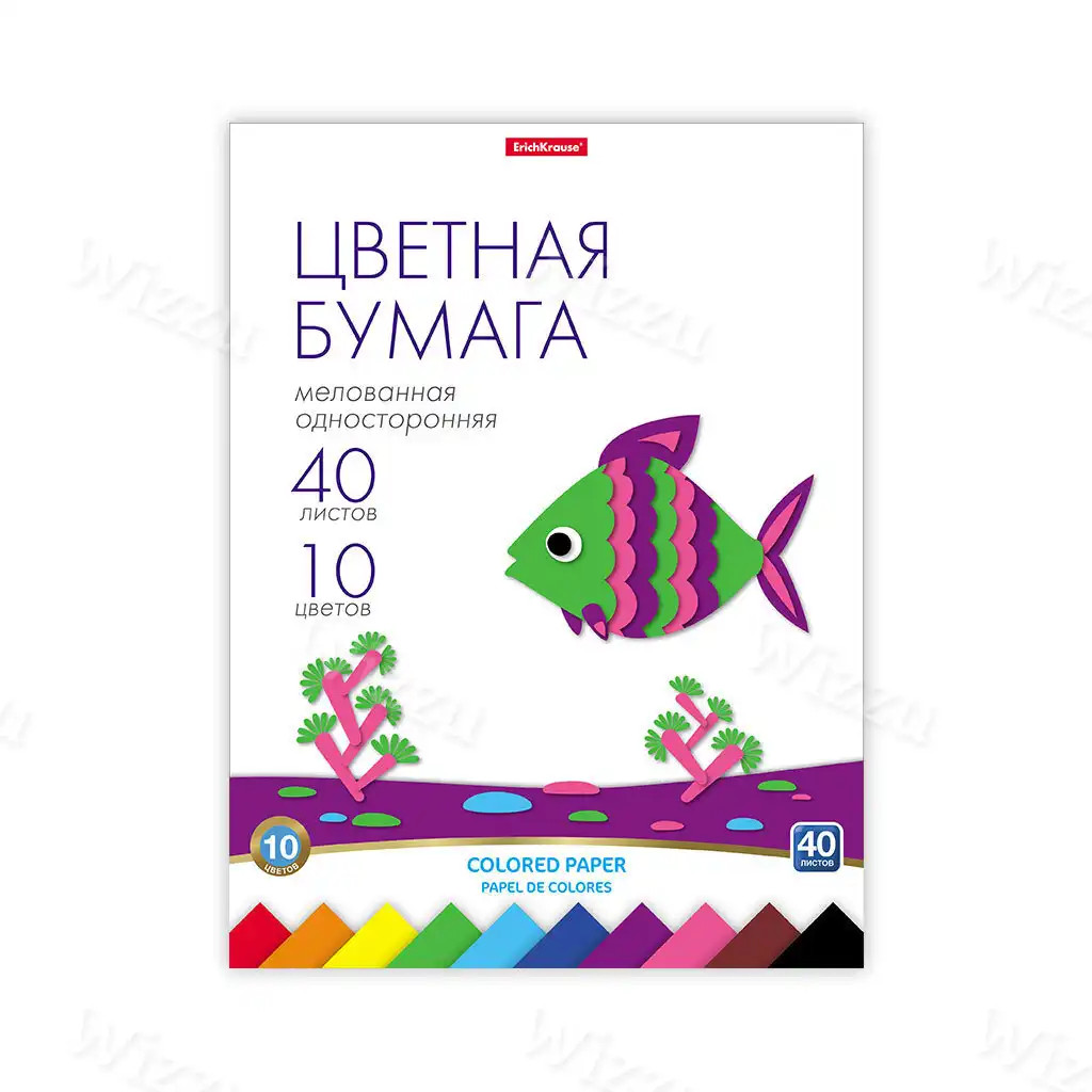 Цветная бумага мелованная односторонняя на клею ErichKrause, А4, 40 листов, 10 цветов, игрушка-набор для детского творчества Арт. 58481