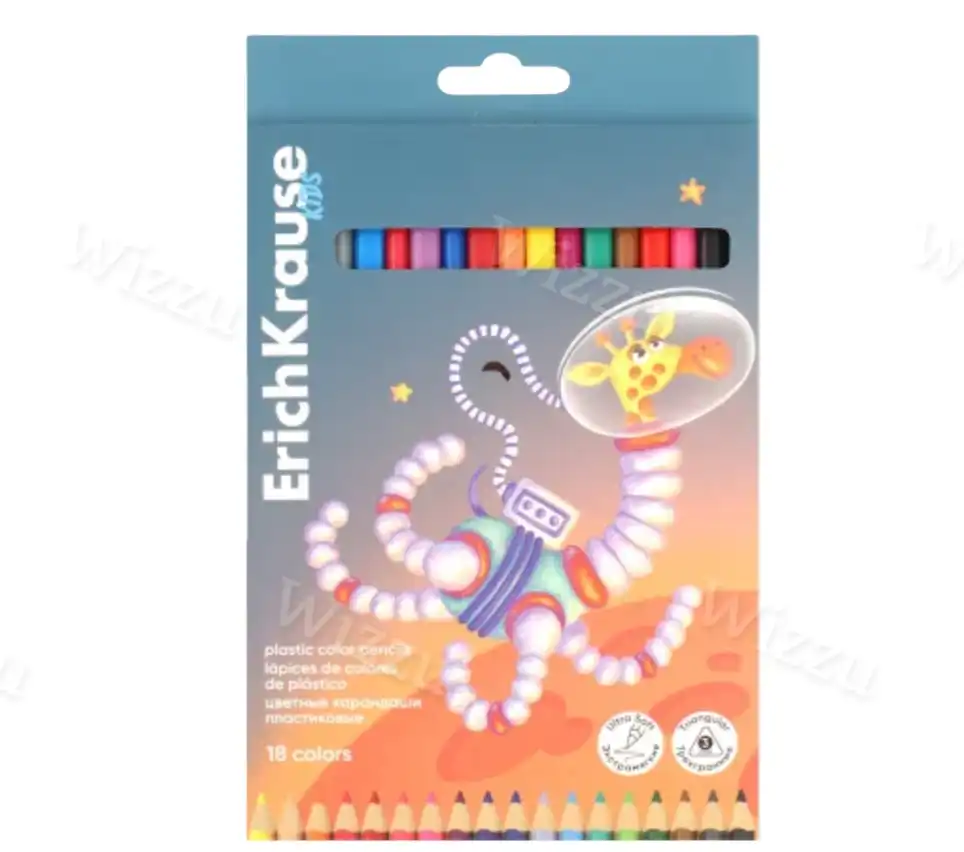 Цветные карандаши пластиковые ErichKrause Kids Space Animals трехгранные, грифель 3 мм, 18 цветов (в коробке с европодвесом 18 шт) Арт.61783