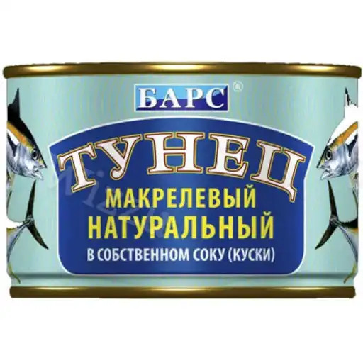 Тунец натуральный макрелевый в собственном соку куски 250г Барс