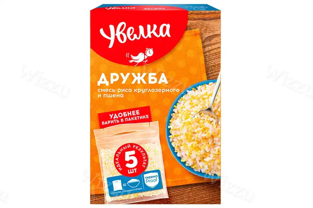 Увелка смесь в пакетиках Круглозерный и пшено шлиф.Дружба 400гр