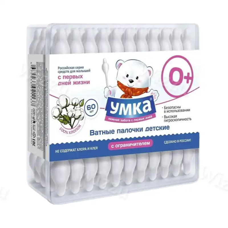 Ватные палочки с ограничителем 60шт Умка, шт
