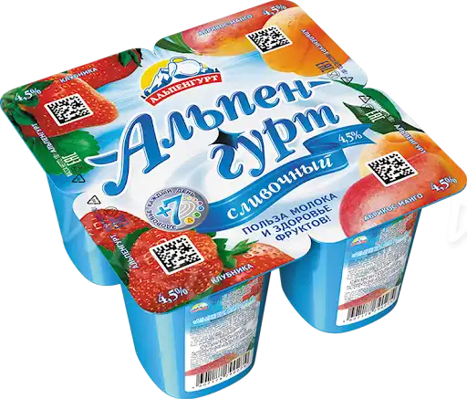 Йогурт Альпенгурт 4,5% сливочн манго клуб абр 100г, шт