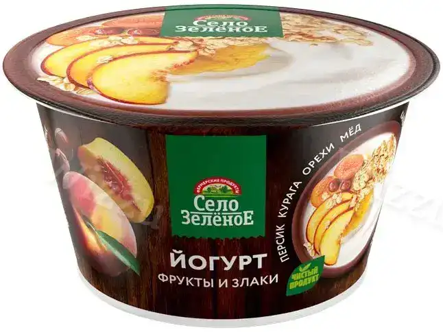 Йогуртный продукт Село Зеленое Персик-курага-орехи-мед 3,2% 180гр