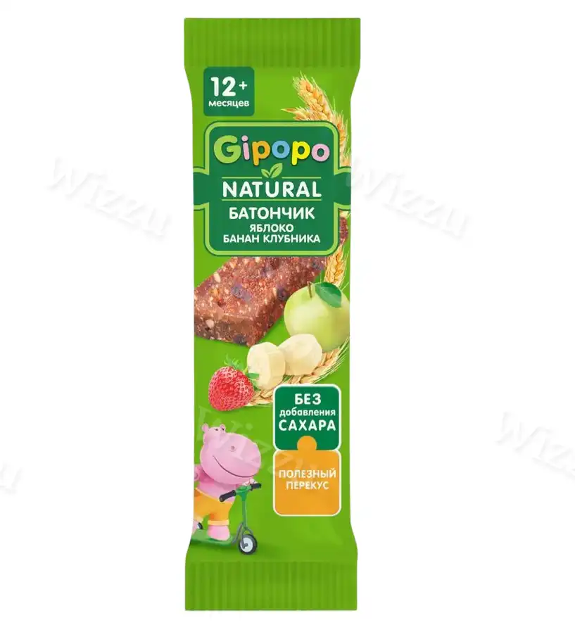 Злаковый батончик "Gipopo" Яблоко-банан-клубника 20г